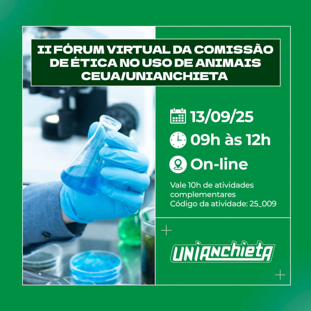 II Fórum Virtual da Comissão de Ética no Uso de Animais – CEUA/UNIANCHIETA II Fórum Virtual da Comissão de Ética no Uso de Animais – CEUA/UNIANCHIETA II Fórum Virtual da Comissão de Ética no Uso de Animais – CEUA/UNIANCHIETA Datas: 13/09/2025 Horário: 09h00 às 12h00 Locais: Online Carga Horária: 10:00 Código da atividade: 25_009 VENHA PARTICIPAR […]
